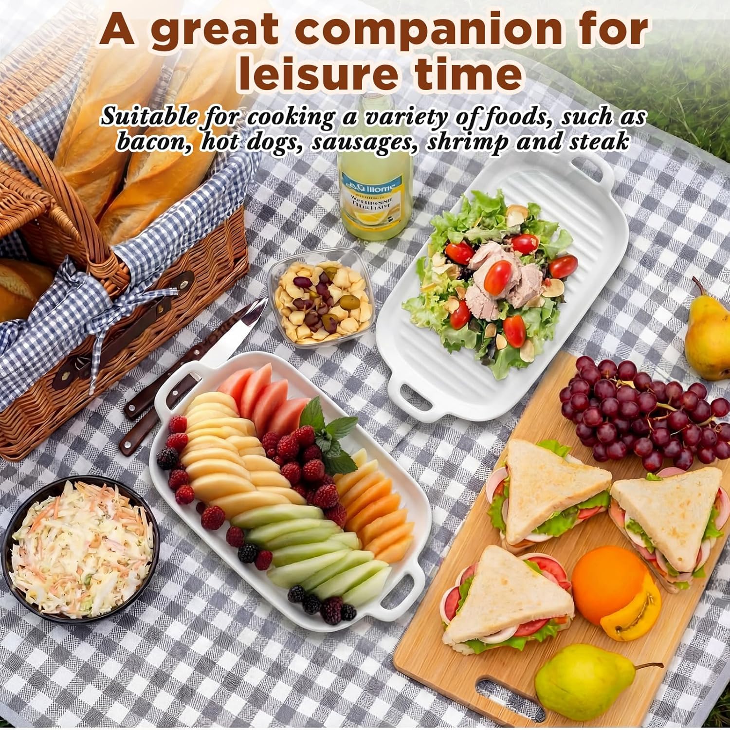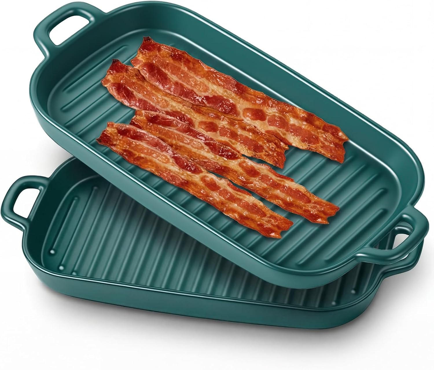 Features: The 1.2 inch deep edges contain grease splatters, keeping your microwave clean. This 2 pack set is ideal for family meals and is fully dishwasher safe. A versatile, durable must-have for any kitchen Designed for even heat distribution, it cooks six slices evenly. The splatter-proof design ensures a clean microwave, and cleanup is simple—it's dishwasher safe Specifications: Material: ceramic Color: white Size: 29 x 15 x 3 cm/11.4 x 6 x 1.2 inches Package includes: 2 Pcs Large Microwave Bacon Cooker Notes: Manual measurement, please allow slight errors on size. The color may exist a slight difference due to different screen displays