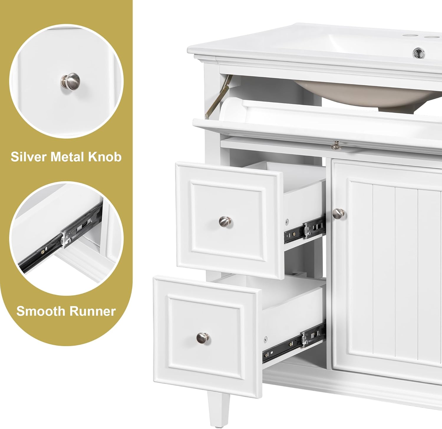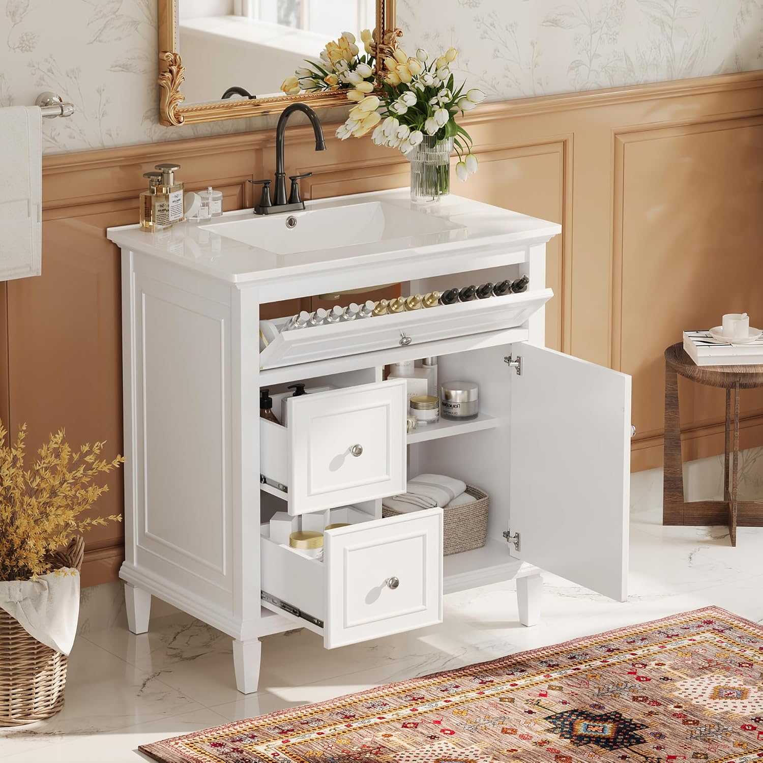 | Model Name | 30 Inch Bathroom Vanity with Ceramic Sink Set Combo, Cabinet with Drawer and Doors, Solid Wood Frame with Painted Finish, Modern Style |