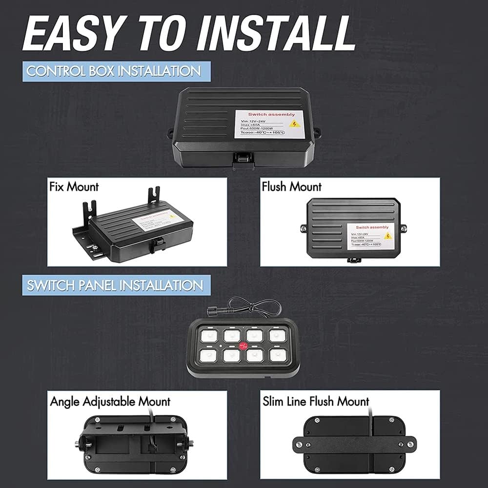 Description Specifications:Input voltage: DC 12/24VPanel Material: Zinc AlloyCircuit box material: high quality ABS+zinc alloyMaximum output power: 1200WEach output: 5A/10A/20A/30A optionsOverload protection (maximum output): 60AMaximum working temperature: 105℃