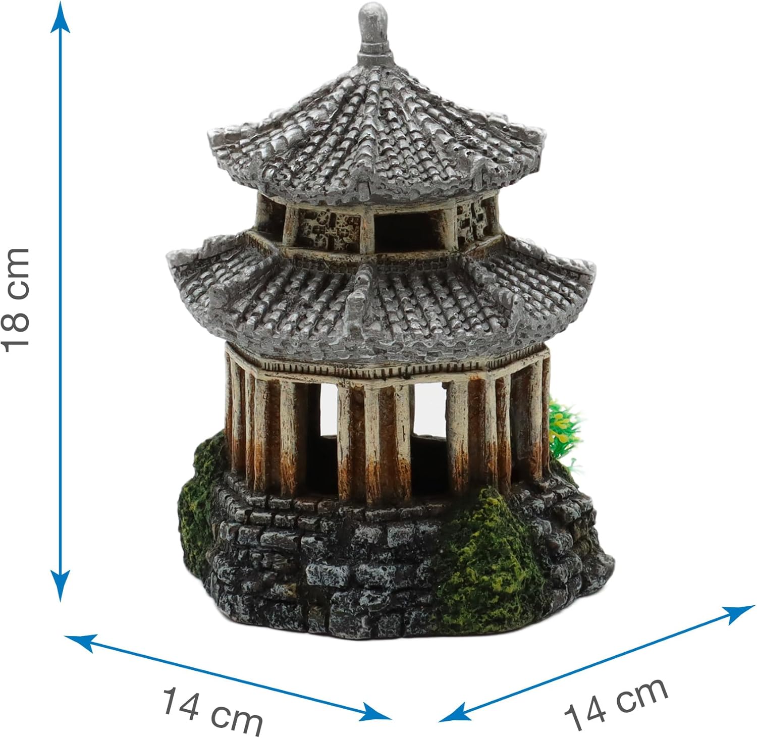 Product Description Beautiful aquarium ornaments made of colored resin and non-toxic. Perfect to recreate protected environments and areas ideal for the fish reproduction. Available in various shapes and sizes to suit all types of aquariums, both freshwater and marine. Various styles available: Japan, Zen, Maya, Egypt, ancient Rome and Greece, Pirates and skulls. Set Contains: JAPAN TEMPLE