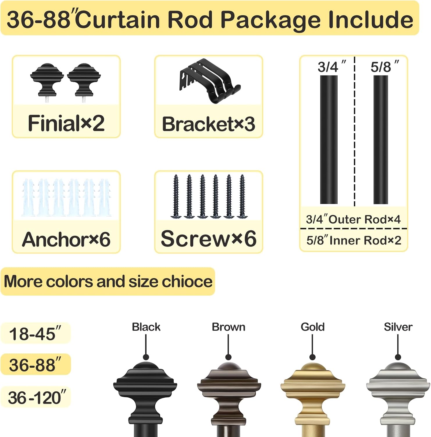 | Included Components | 2 x Finials, 3 x Brackets, 3 x Connector, 4 x 16" x 3/4"Rods&2 x 16" x 5/8"Rod, 6 x Anchors &6 x Screws |