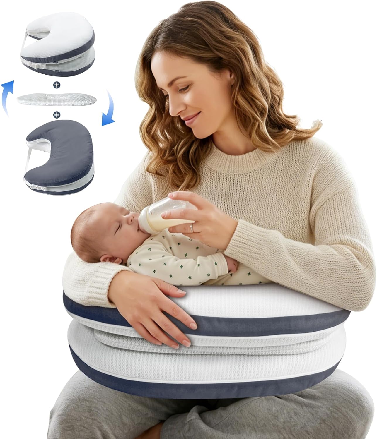 Turn every feeding session into a calm, pain-free bonding moment with the original Quabarai Ergonomic Breastfeeding Pillow — the ultimate nursery essential for new and expecting parents.Crafted from 100% baby-safe premium memory foam, this nursing pillow delivers the perfect balance of steady, reliable support and cloud-like softness, eliminating arm, shoulder and back strain during feeding, while maintaining the ideal ergonomic height and position for both you and your baby. Our innovative “Safety Guardian” contoured cradle, inspired by a mother’s protective embrace, securely holds your baby to prevent slipping during feeding, while freeing up one of your hands for stress-free multitasking and relaxation.The extra-wide feeding pad features a double-layer foldable design that grows with your baby, from newborn to active infant, ensuring consistent comfort and support even during long feeding sessions. The fully adjustable extra-long waistband fits all body types, locking the pillow securely in place to eliminate gaps, and makes it easy for dads and other caregivers to master safe, correct feeding posture.More than just a breastfeeding pillow, this multi-functional must-have provides lumbar support for expecting moms, a safe space for baby’s awake tummy time, and folds compactly for space-saving storage. It’s an essential addition to any baby registry, and the perfect practical baby shower gift for new and experienced parents.SAFETY NOTE: For awake, adult-supervised use only. Not intended for infant sleep.