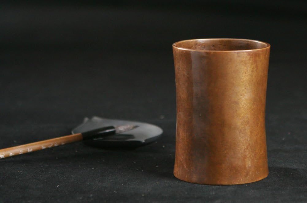 High-grade exquisite brush Container with concise appearance. Heavy and steady.Good for holding brushes. A nice decoration for traditional study in an ancient style.Material: Antique Bronze; Net Weight: 31oz(884g); Size: 3.34"*3.34"*4.3"(8.5cm*8.5cm*11cm);Come along with nice cardboard box.Brand: Easyou.