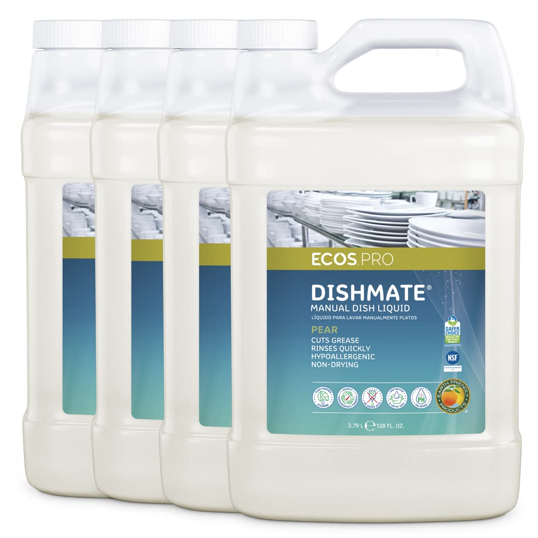 ECOS PRO Hand Soap Refill | Hypoallergenic | Readily Biodegradable Formula | With Vitamin E & Antioxidants | Made In The USA | Orange Blossom 1 GALLON/ 128 Fl Oz (Pack of 4)The crystal-clear, plant-powered, ECOS PRO hand soaps are formulated to lift dirt and grease, but gentle enough for even the most frequently washed hands. Infused with nourishing vitamin E and Antioxidants, ECOS liquid hand soap moisturizes while protecting hands. You’ll feel the difference each time you wash. The ECOS PRO bulk gallon size liquid hand soap refill is perfect for professional, industrial and commercial facilities looking for value yet quality products for refills of their hand soap dispensers. Perfect for restaurants, offices, schools, hospitals, gyms, hotels, spas, manufacturing facilities, or at home. Using the bulk hand soap refills also reduces plastic consumption and plastic waste by refilling existing soap dispensers. The ECOS PRO Hand Soap is ready-to-use. Simply wet hands, use a teaspoon size amount of hand soap in hands (one pump), and rub into lather and rinse. ECOS PRO hand soap and refills are plant-powered and made without dyes, artificial fragrances, and are Hypoallergenic, making ECOS PRO Hand Soap an excellent choice for restrooms because it’s great for all skin types. Using ECOS PRO hand soap and cleaners is a win-win for workers and for guests, and a win for your budget too, because with ECOS PRO hand wash soaps & cleaners, green is finally affordable. Available in soothing Lavender, refreshing Orange Blossom, and unscented Free & Clear, the ECOS PRO hand Soap is a readily biodegradable, pH balanced formula that is made using sustainable, plant-powered ingredients that don’t dry out your skin. With GHS Compliant Labels, recognized and certified by the US EPA’s Safer Choice (DfE) and USDA’s BioPreferred (Biobased) Program, the ECOS liquid hand soap refill is also Leaping Bunny Certified, Hypoallergenic, Grey water and Septic Safe, Readily Biodegradable Formula, Plant powered, Climate Positive, No Nasties, Woman Owned, Made in the USA, 100% Vegan, and Not Tested on Animals. ECOS® IS A SIX-TIME DESIGNATED A U.S EPA SAFER CHOICE PARTNER OF THE YEAR: 2015 | 2017 | 2019 | 2020 | 2021 | 2022Earth Friendly Products Proline PL9720/04 Dishmate Pear Ultra-Concentrated Liquid Dishwashing Cleaner, 1 gallon Bottles (Pack of 4)The Earth Friendly Products Proline PL9720/04 Dishmate pear ultra-concentrated liquid dishwashing cleaner is a pear-scented phosphate-free liquid detergent for manual washing of dishes, silverware, glassware, cooking utensils, and related items, and is made with biodegradable, plant-based active ingredients using a pH-balanced formula that reduces the risk of damage to surfaces. It comes in a one-gallon plastic bottle for efficient storage when filling a dispenser (sold separately). This product is safe for greywater and septic systems. Earth Friendly Products manufactures household and commercial cleaning products. The company, founded in 1989, is headquartered in Addison, IL.