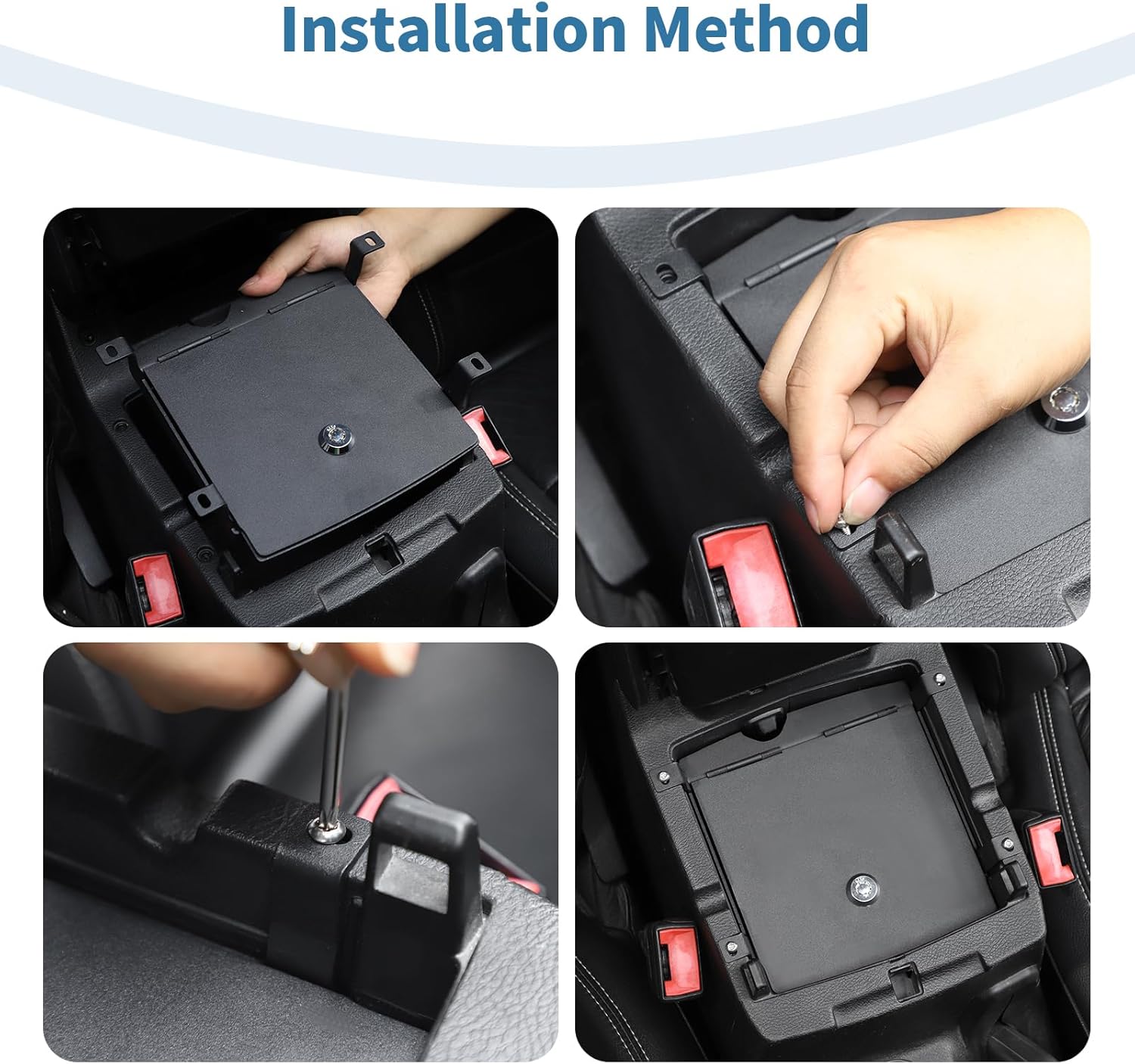 Product Features: Center Console Organizer Safe Box with Lock Compatible with Jeep Wrangler JL JLU 2018-Present for Gladiator JT 2020-Present Upgrade your factory Center Console Box with a set of the safe box with key lock. Made from die cast e-coated Iron and High Strength. Directly place on the original Center Console Box, keep the gun/goods safe. The new Center Console Box gives you in ultimate security and protection with a stylish look for your key. The design of the products is aim to show your personality and attitude on the basis of the high-quality by combining the most current elements. Package Included: 1x Center Console Organizer Safe Box with Lock Necessary Hardware Included