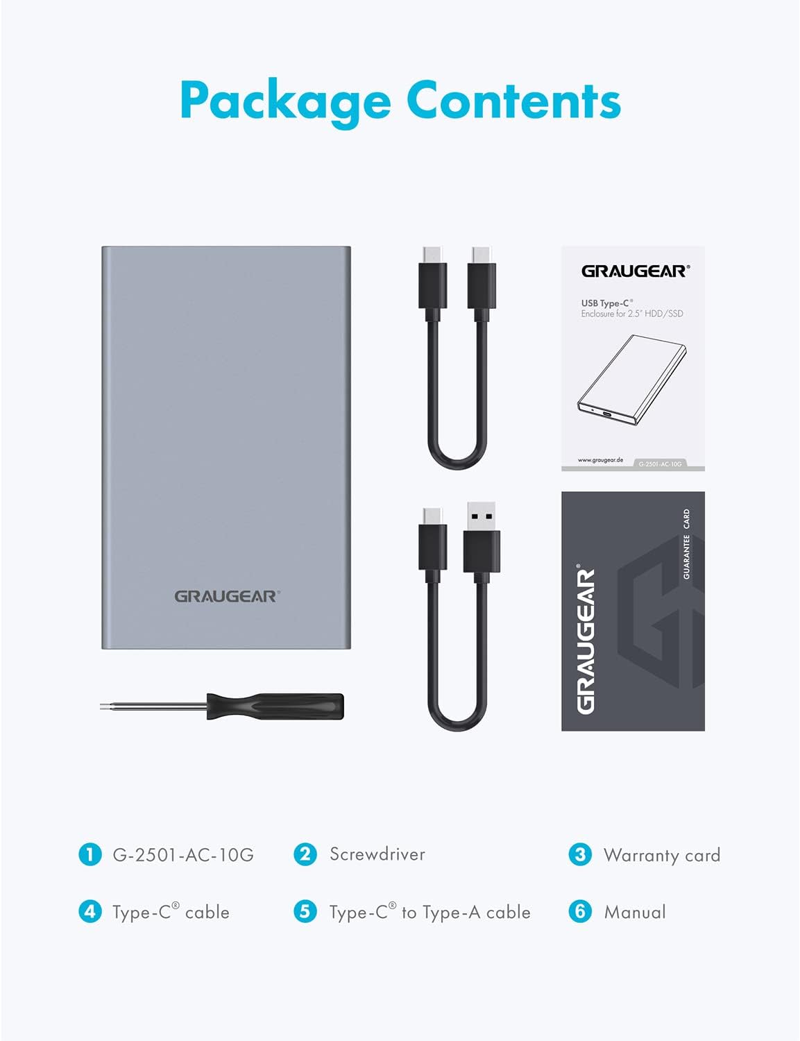 Simple elegance - The G-2501-AC-10G makes a 2.5" HDD/SSD appear in simple elegance. The aluminium housing in sandblasting look is also a small speedster that offers a transfer speed of up to 6 Gbit/s with its USB 3.2 Gen 2 USB-C port.