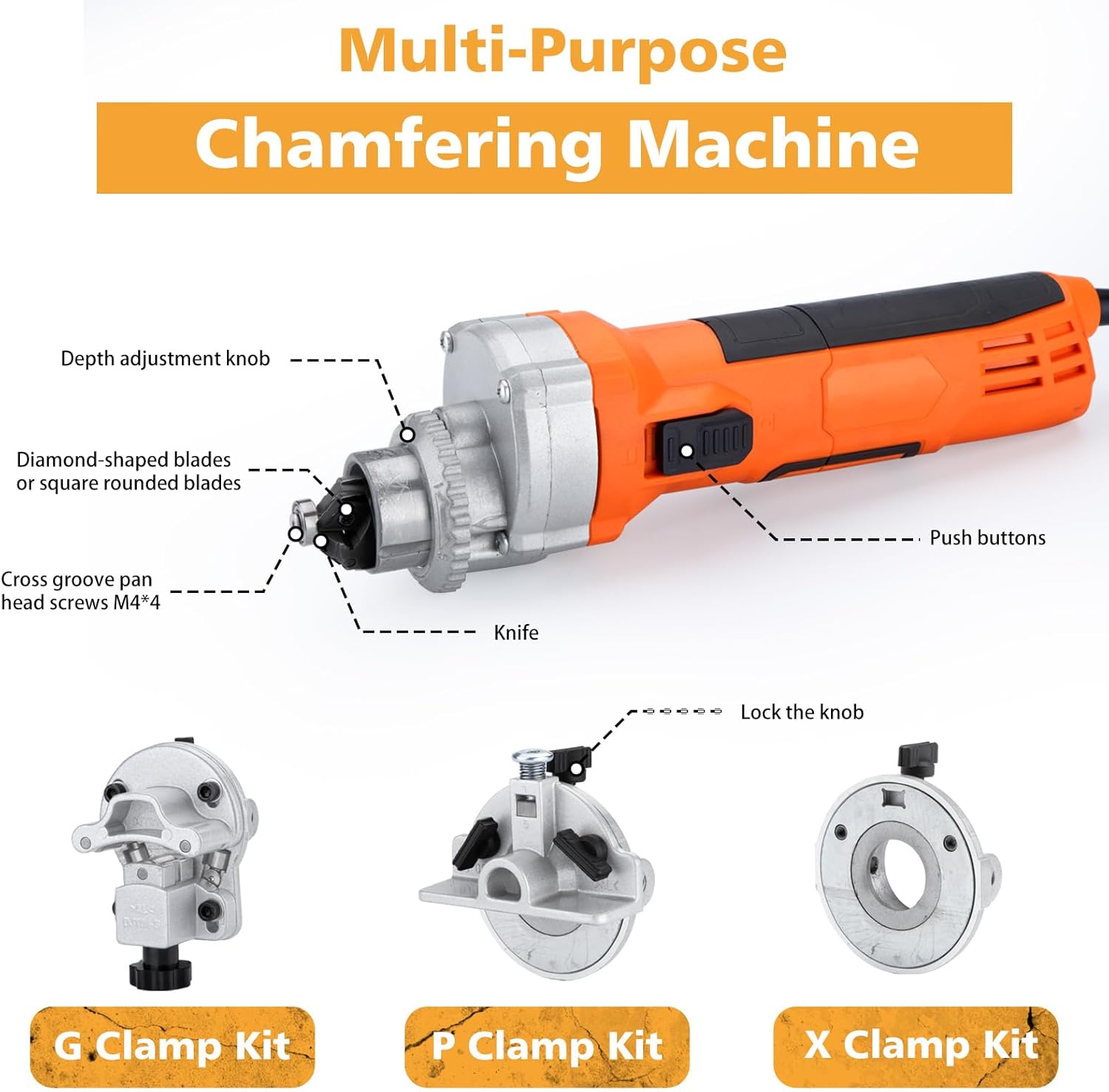 This powerful 850W AC-powered chamfering machine is designed for trimming, beveling, deburring, and creating round corners with a 45-degree arc. Its handheld design allows for easy maneuverability and control during operation. The set includes various attachments and accessories neatly organized in a durable carrying case, ensuring you have the right tool for the job. With its high-torque motor and robust construction, this machine is perfect for tackling tough materials and demanding applications in workshops, factories, or job sites. Achieve precise and professional-looking chamfers effortlessly with this versatile and user-friendly tool.
