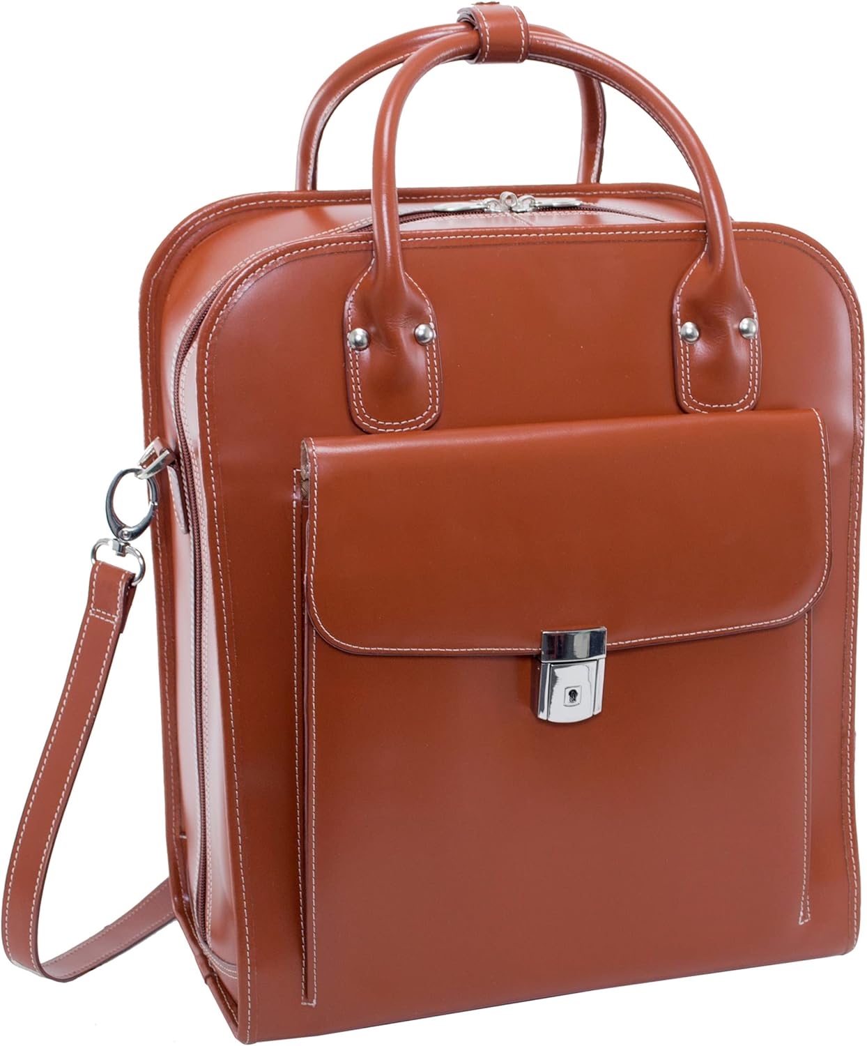 Patented 2-in-1 Detachable Wheel and Handle System briefcase. Vertical, European influenced design allows easier maneuvering in tight, crowded areas. Narrow design also benefits users who travel on planes with the ability to maneuver down aisles without having to lift the bag. Stylish, flap-over front pocket for files and accessories with secure clasp and key lock. Secure, centered zipper pocket within the main compartment. Main compartment features a padded laptop section that fits and protects most laptops up to 15" in screen size. Main compartment also features an interior organizer, interior zipper pocket and space for files. Removable shoulder strap and weather proof cover included.