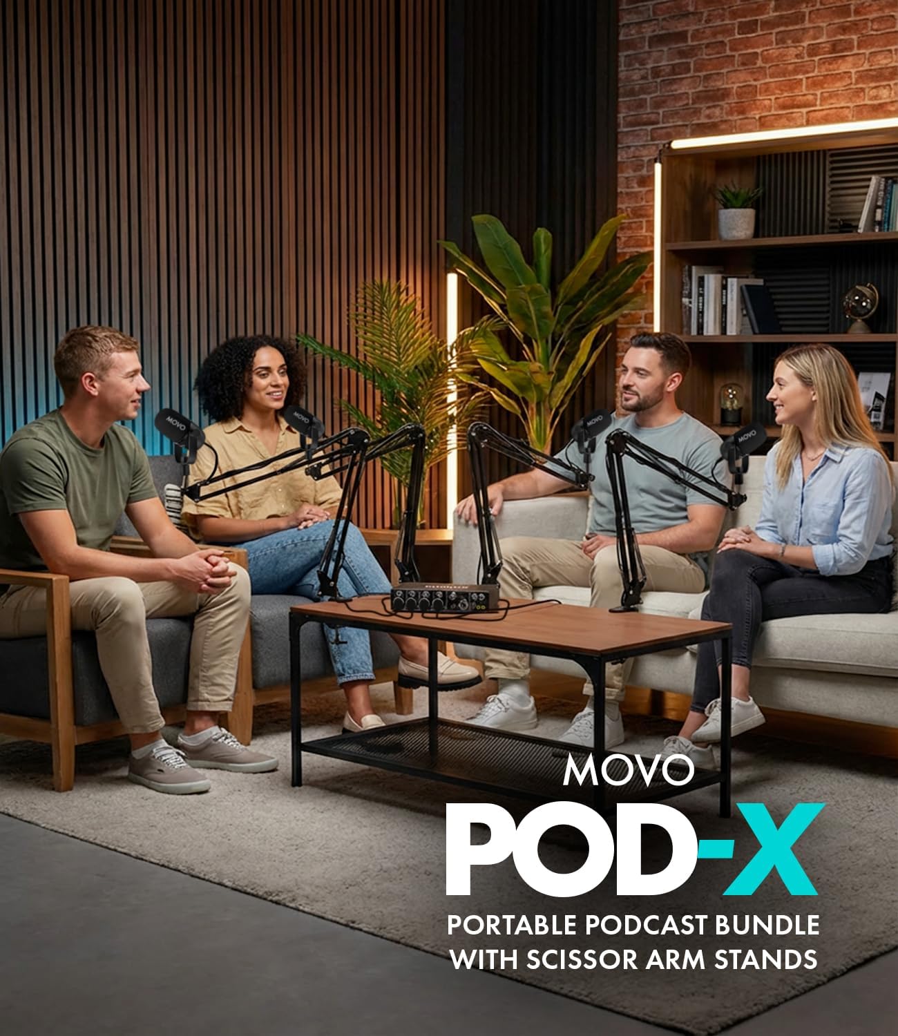 | BuiltIn Media | 4-Channel Audio Interface, 4 CastMic Dynamic Podcasting Microphones, 4 Boom Arms |