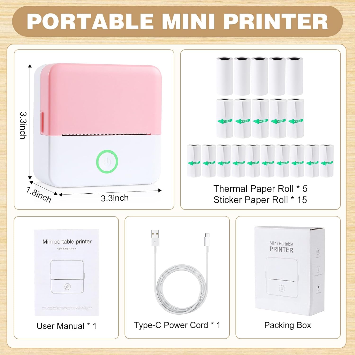 Print Pods Mini Printer, Thermal Inkless Sticker Maker with 20 Rolls Printing Paper, Pocket Printpod for phone, Impresora Portátil for Notes, Flashcards, Journal, DIY, Compatible with iOS & Android