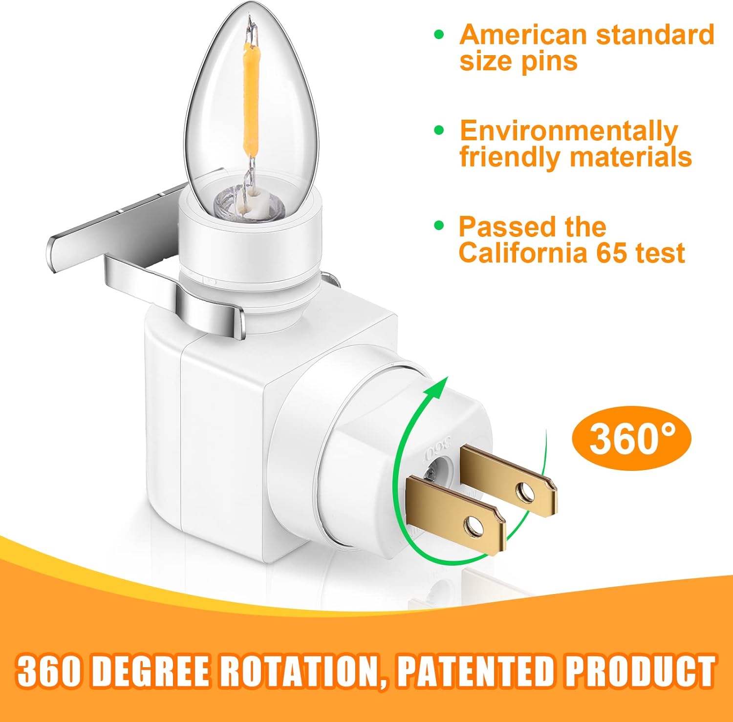 Features: Sufficient quantity: Plug in night lights comes with enough quantities that you can plug them in anywhere you want to light, and they also can satisfy your replacement needs. Rich applicable scenarios: Night light rotating plug is rotatable that is easy for you to adjust, with on/off switch that easy to control, suitable for bedroom, living room, bathroom and so on. Specifications: Material: plastic Color: white Size: as shown in the pictures Package includes: 12 x Rotating lamp bases 12x Metal clips Notes: Manual measurement, please allow slight errors on size. The color may exist a slight difference due to different screen displays.
