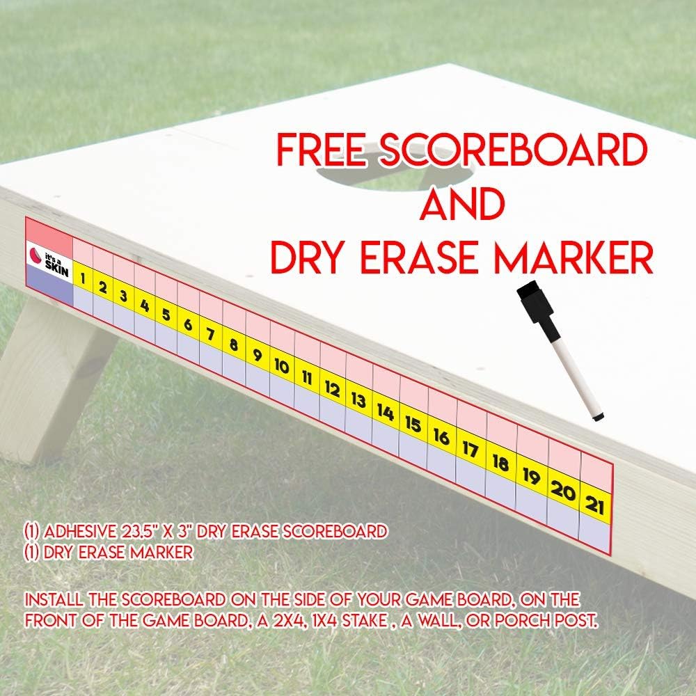 It's a Skin vinyl wrap for regulation size cornhole boards - Made in the USA using high quality vinyl. Super rich colors provide a great look and added protection against minor scratches. Leaves no sticky residue behind. A bonus marker and scoreboard is included.