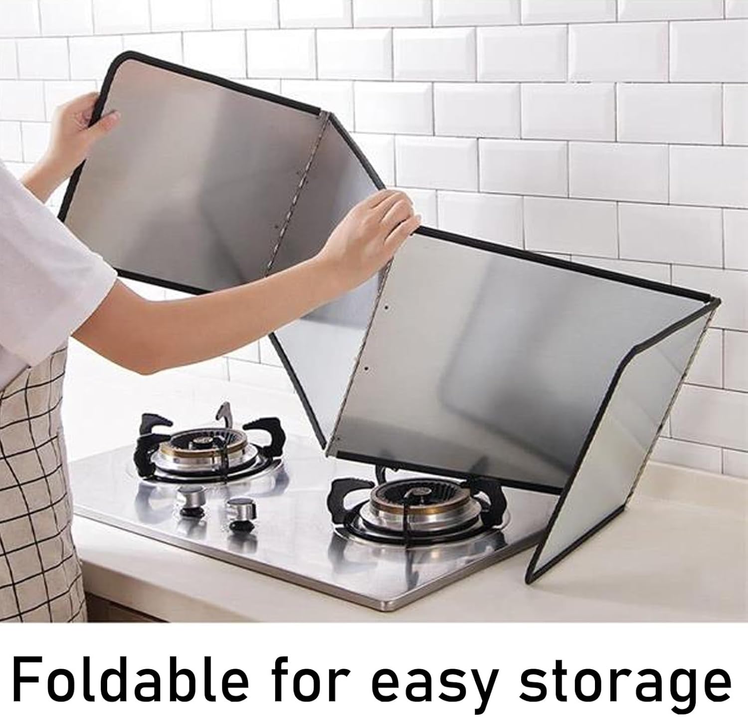 The stainless steel splash guard is designed to prevent cooking oil from splashing onto walls and floors. Made of brushed stainless steel, it features a non-slip surface that is both beautiful and durable. The non-stick coating allows for easy cleaning and reduces the time spent maintaining your kitchen. This splash guard is collapsible for convenient storage, folding flat for easy placement in cabinets, drawers, or pantries. Ensure your cooking area remains tidy and protected with this effective splash guard. Product name: stainless steel splash guardMaterial: thickened stainless steelDimensions on all four sides: 40x80x40cm, 45x80x45cm, 50x80x45cm, 60x80x45cm, 65x90x45cm, 70x80x45cm, 75x80x45cm, 70x90x50cm, 75x90x45cmFeatures: environmental protection, oil resistanceCleaning: easy to clean with a clothPackage includes: 1x stainless steel splashback