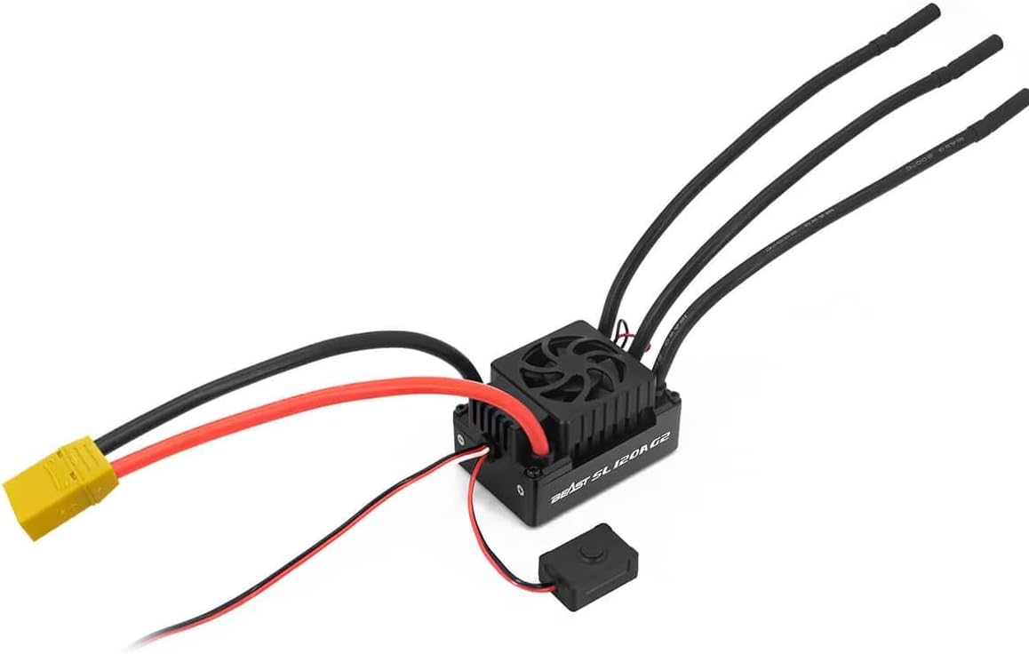 Unleash Precision Control with the ZTW Beast G2 SL 120A ESC Engineered for the serious RC enthusiast, the ZTW Beast G2 SL 120A Electronic Speed Controller is the heart of your 1/10 scale vehicle's power system. Designed for sensorless brushless motors, this compact powerhouse delivers smooth, reliable throttle response and robust performance on various terrains. Key Features & Benefits: High-Efficiency 120A Output: Handles continuous 120A current, providing ample power for 1/10 scale buggies, trucks on 2S, 3S, 4S LiPo batteries. Advanced Switching BEC (SBEC): Features a built-in 6V/3A Switching BEC that ensures stable, clean power for your receiver and servos, even under heavy load, preventing brownouts and ensuring consistent steering and control. Water-Resistant & Splash-Proof: Designed with a conformal coated PCB to handle wet conditions like puddles, splashes, and morning dew. It is water-resistant, but NOT fully waterproof, it must be kept away from full submersion in water. 32-Bit Processor & Sensorless Operation: The advanced 32-bit MCU offers precise processing for smooth acceleration and ultra-low latency throttle response. Perfect for a wide range of sensorless brushless motors. Comprehensive Protection: Built-in safeguards including low-voltage cutoff (LVC), over-temperature protection, and throttle signal loss protection to shield your ESC and motor from damage. Specifications: Model: ZTW Beast G2 SL 120A Continuous Current: 120A Input Voltage: 2-4S LiPo/5-12 NC BEC Output: 6V/3A (Switching) Size(L*W*H): 56*38*33mm Weight: 128g Motor Type: Sensorless Brushless Waterproof: Splash-Proof Connectors: XT90/4.0mm Bullet Gold Plug Programming Way: LED Program Card Compatible With: Ideal for 1/10 Scale RC Cars, Trucks, Buggies. Short Course Truck(SCT) models requiring a 120A ESC upgrade. Package Includes: 1 x ZTW Beast G2 SL 120A ESC 1 x User Manual (English)